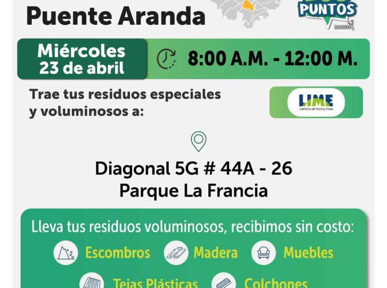 Ten en cuenta que la UAESP dispone semanalmente de varios Ecopuntos para prestar este servicio a la ciudadanía en las localidades de Bogotá.
