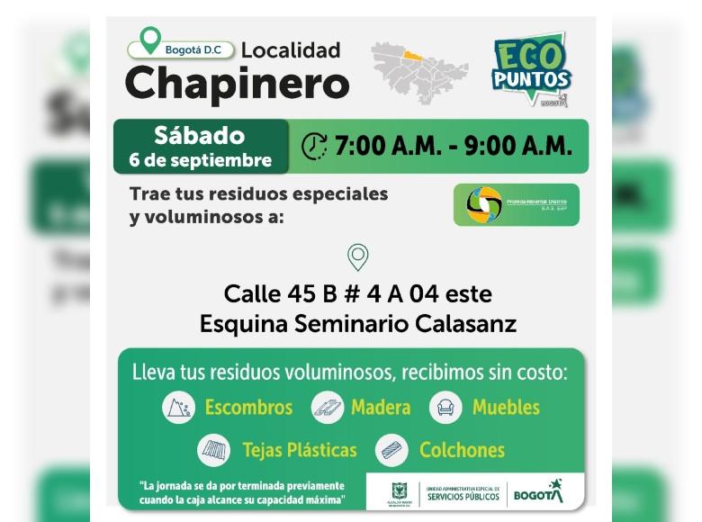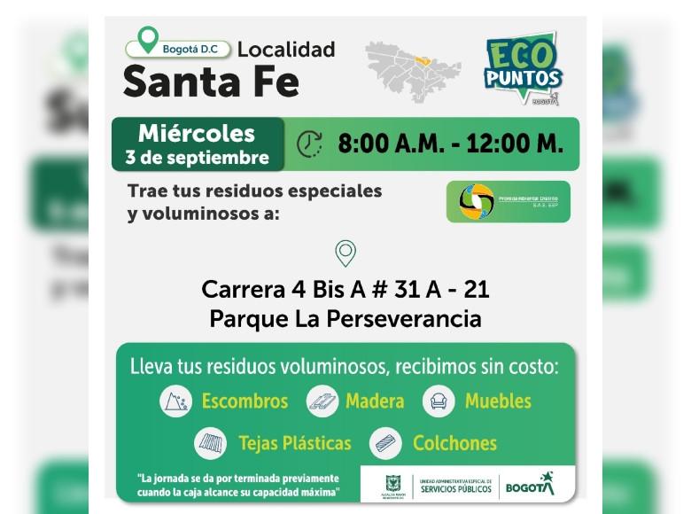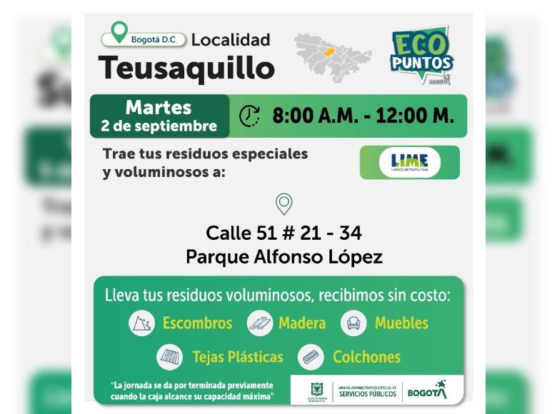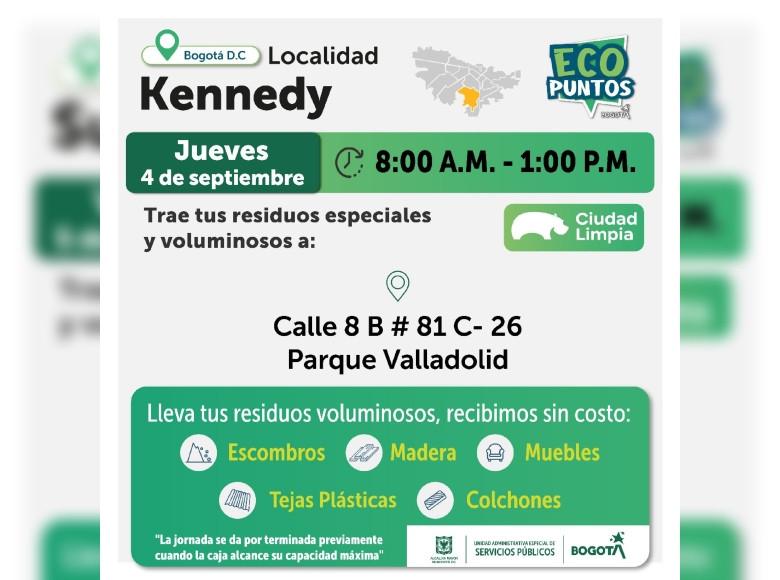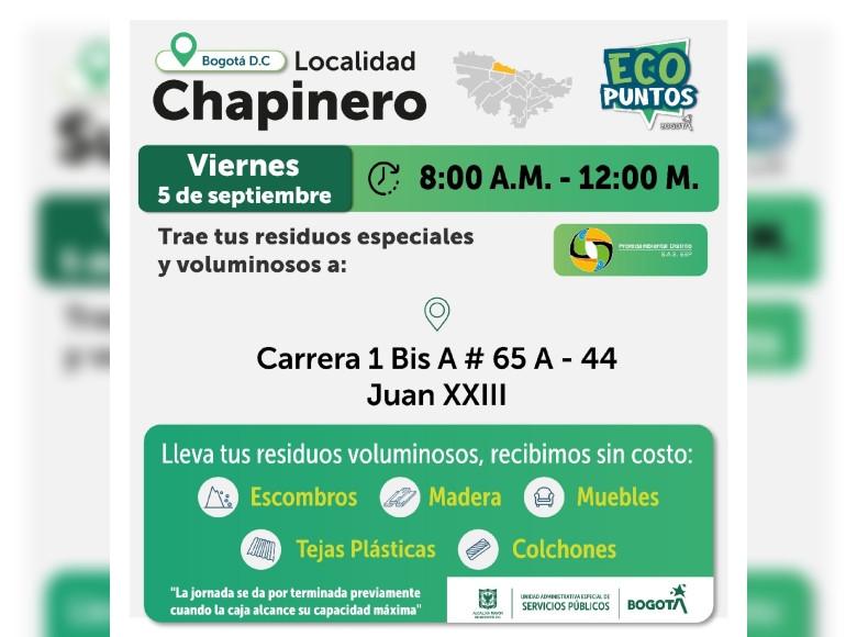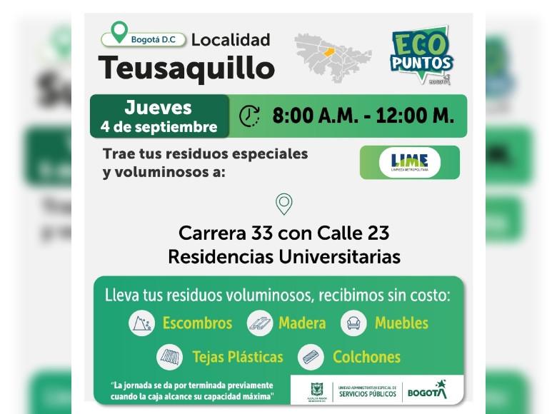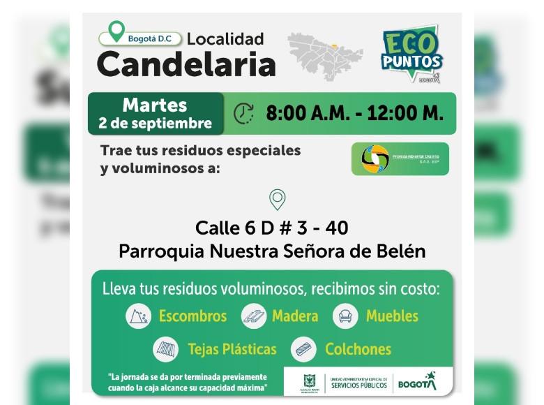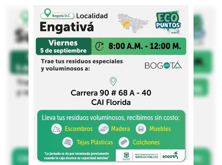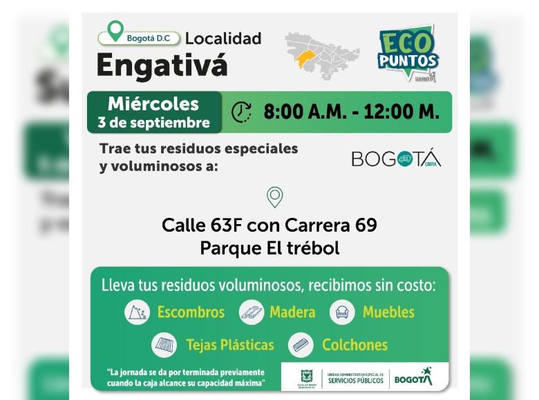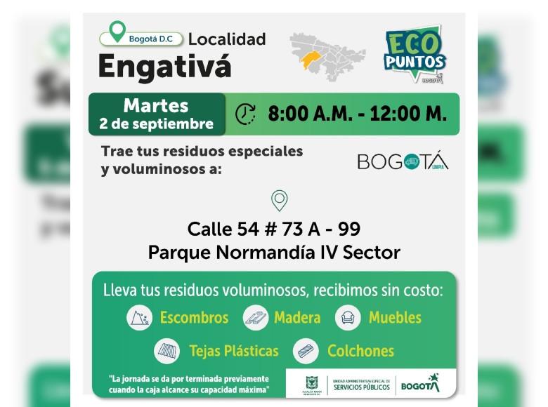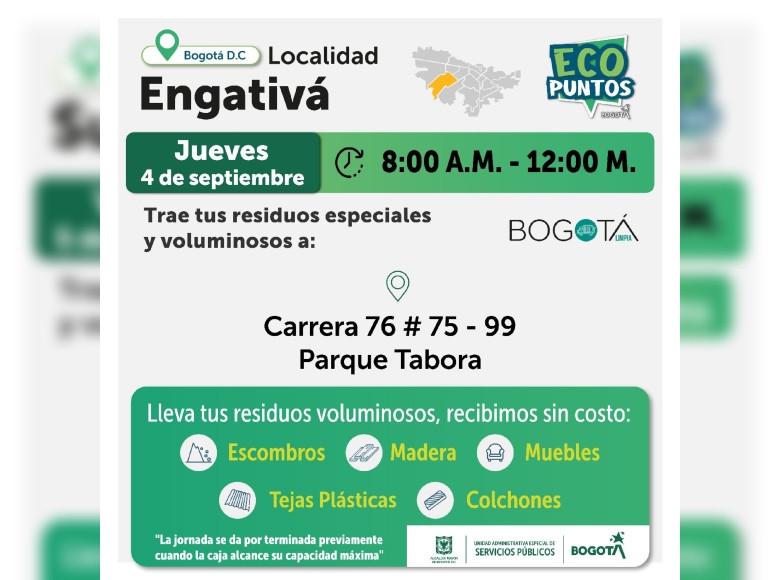 Ten en cuenta que la UAESP dispone semanalmente de varios Ecopuntos para prestar este servicio a la ciudadanía en las localidades de Bogotá.