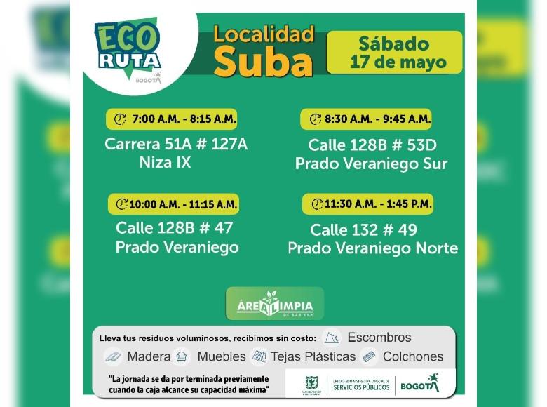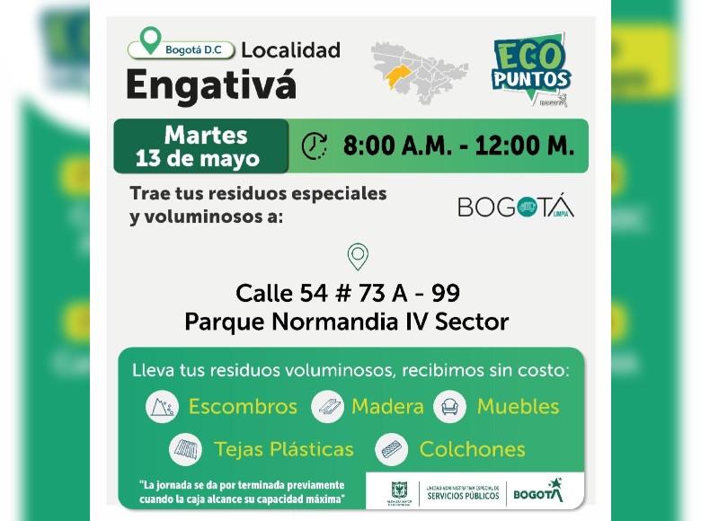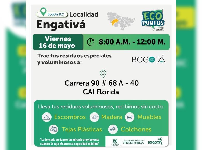 Ten en cuenta que la UAESP dispone semanalmente de varios Ecopuntos para prestar este servicio a la ciudadanía en las localidades de Bogotá.