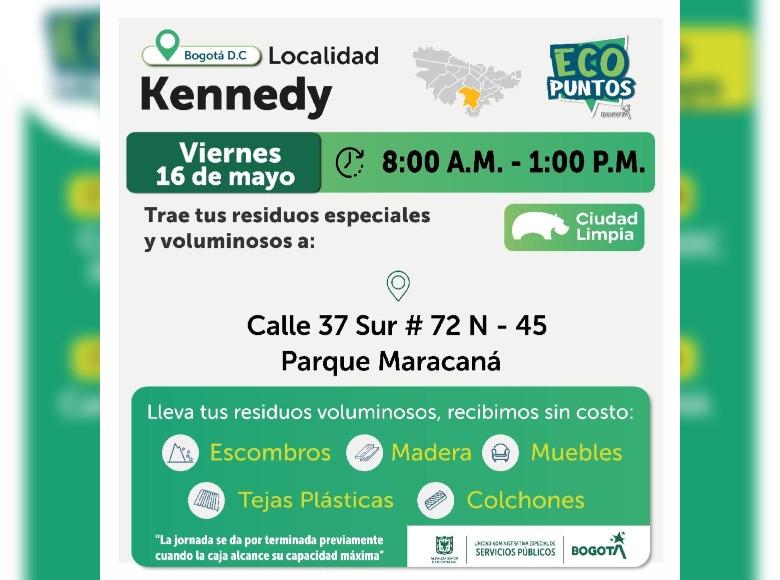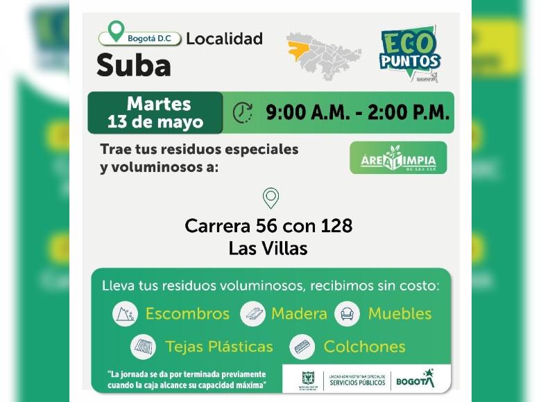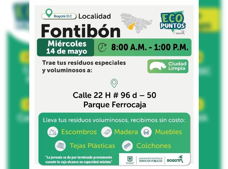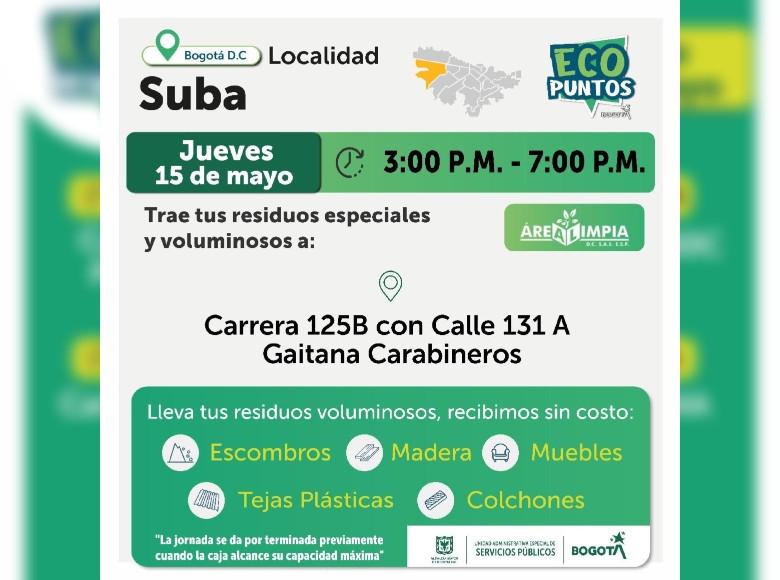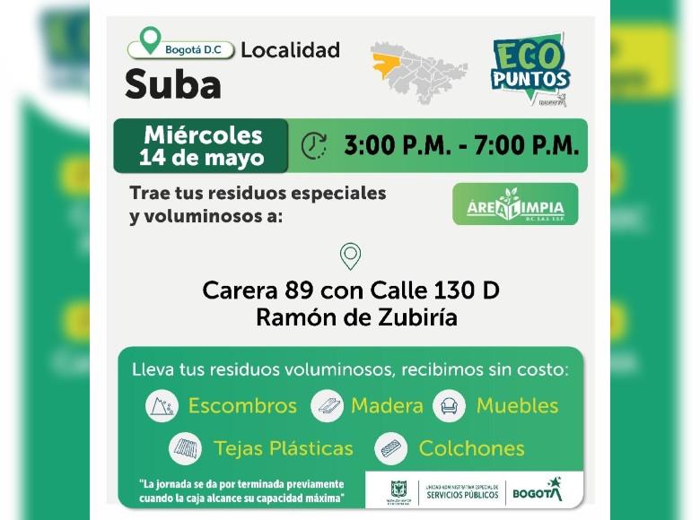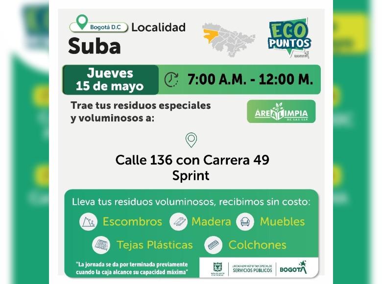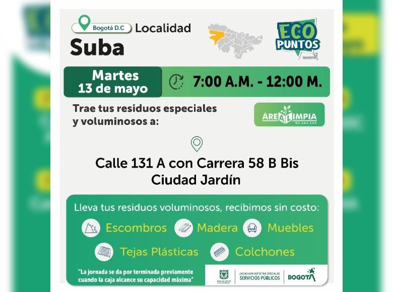 ¡Aquí sí pasa, en Bogotá, mi Ciudad, mi Casa trabajamos para mantener limpia nuestra ciudad! La Unidad Administrativa Especial de Servicios Públicos (UAESP), invita a la ciudadanía que tenga escombros, muebles o enseres en mal estado a llevarlos a los Ecopuntos disponibles en Bogotá que se tendrán ubicados en Suba, Kennedy, Fontibón y más localidades, del 13 al 17 de mayo de 2025.