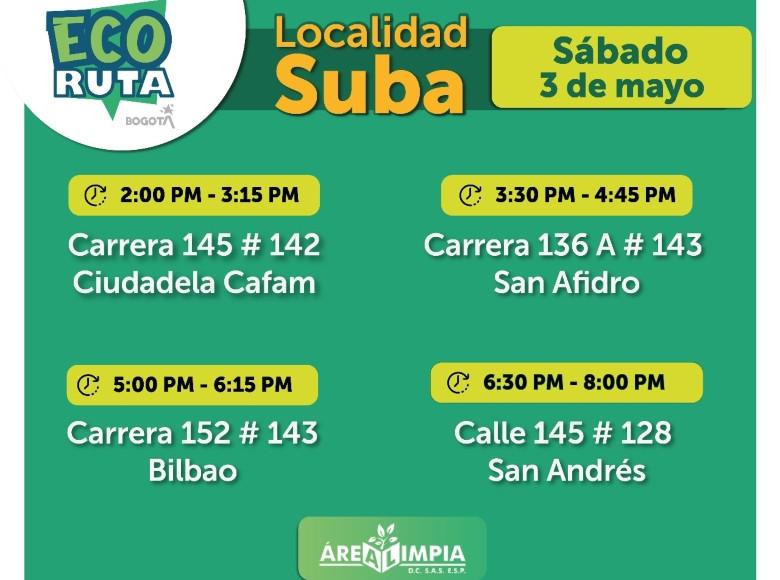 La Unidad Administrativa Especial de Servicios Públicos (UAESP), invita a la ciudadanía que tenga escombros o muebles en mal estado a llevarlos a los puntos disponibles que se tendrán con la Ecoruta el sábado 3 de mayo de 2025, en la localidad de Suba en Bogotá, mi Ciudad, mi Casa.