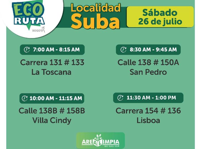 ¡Aquí sí pasa, en Bogotá, mi Ciudad, mi Casa trabajamos para mantener limpia nuestra ciudad! La Unidad Administrativa Especial de Servicios Públicos (UAESP), invita a la ciudadanía que tenga escombros, muebles o enseres en mal estado a llevarlos a la Ecoruta disponible en Bogotá que se tendrá ubicada en la localidad de Suba, este sábado 26 de julio de 2025.