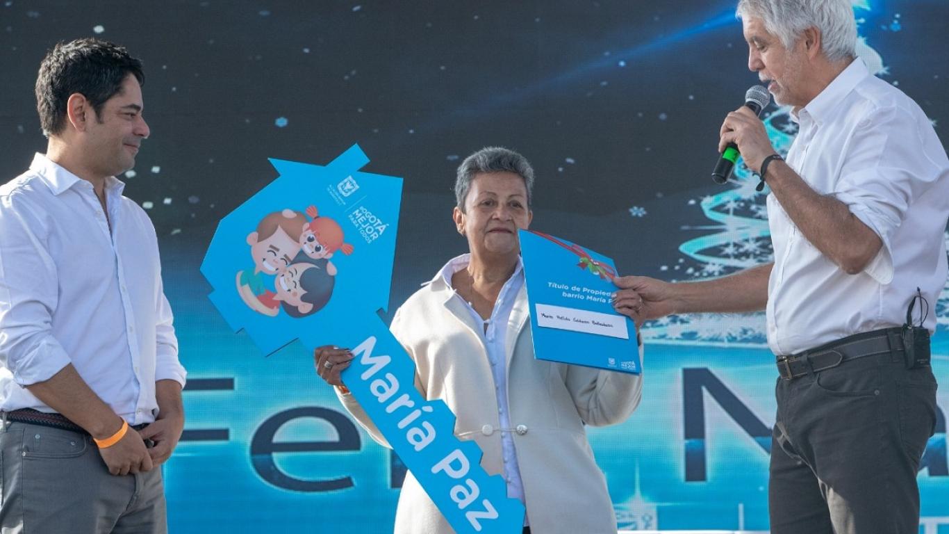“María Paz es un símbolo de Bogotá y representa el esfuerzo de miles de familias que con su trabajo construyeron sus viviendas. Este barrio fue legalizado por Enrique Peñalosa en su primera Alcaldía y ahora sin carreta les estamos entregando sus títulos, que benefician a cerca de 5.000 personas”, sostuvo por su parte el secretario de Hábitat, Guillermo Herrera.