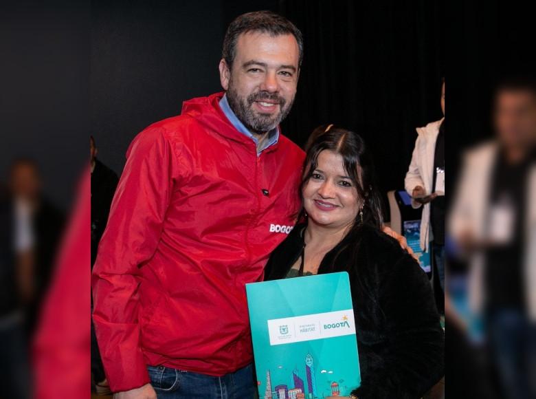 Durante el primer día de la gran Feria de Vivienda 'Mi Casa en Bogotá' en el Movistar Arena, el alcalde Carlos Fernando Galán acompañó a la secretaria del Hábitat, Vanessa Velasco, en la entrega del subsidio número 14.000 de esta Administración distrital.