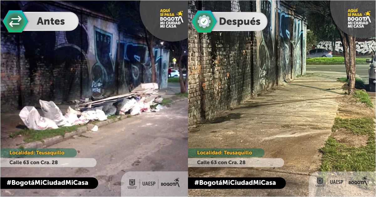 ¡En Bogotá, mi Ciudad, mi Casa trabajamos para seguir cuidando el espacio público! En la madrugada de este viernes 13 de junio, el Distrito adelantó una jornada de limpieza en la localidad de Teusaquillo, en la calle 63 con carrera 28, en la que se realizaron diversas acciones de limpieza que permitieron dejar este espacio en óptimas condiciones.