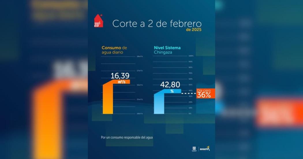 Conoce en el siguiente post de la Alcaldía Mayor de Bogotá, más detalles del consumo del agua y niveles del Sistema Chingaza con corte al 2 de febrero de 2025