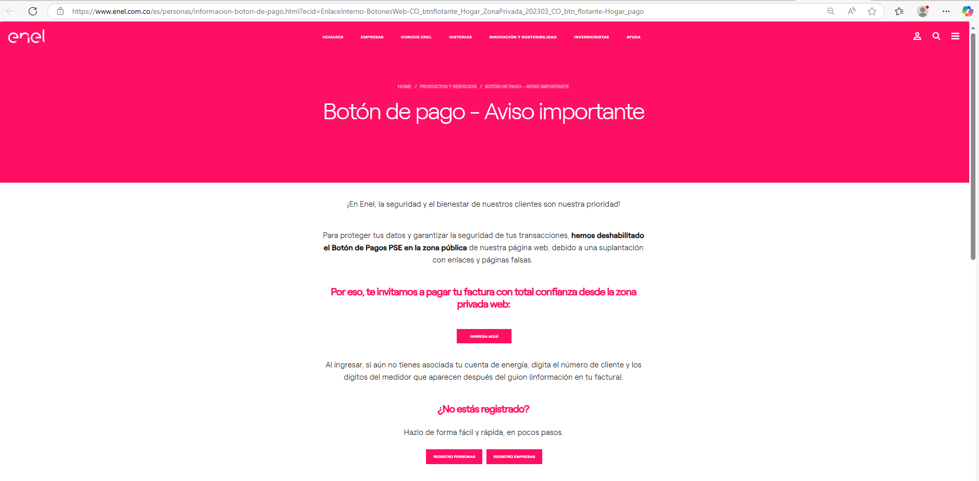 5. Recuerda tener cuidado con las páginas falsas y solo realiza pagos de factura de Enel Colombia en los puntos autorizados.