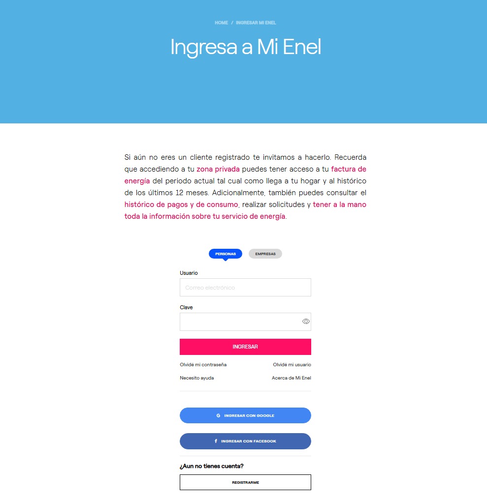 1. Ingresa en la página oficial de Enel Colombia en https://www.enel.com.co/