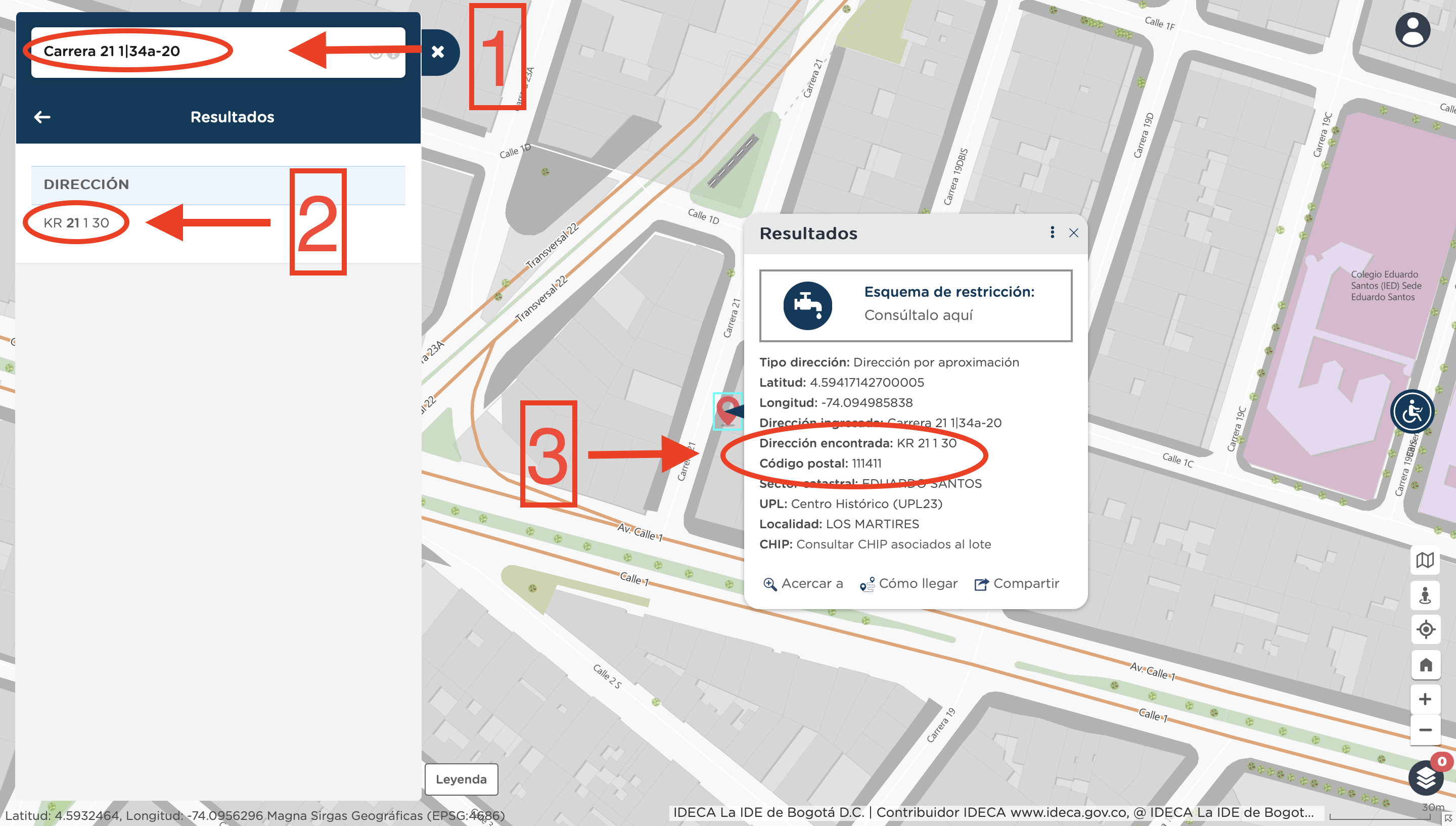 Consulta tu código postal en tres pasos con con Mapas Bogotá: