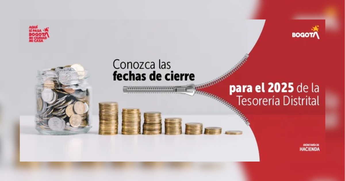 En Bogotá, mi Ciudad, mi Casa se promueve un cierre ordenado y responsable de la vigencia fiscal 2025. La Secretaría de Hacienda y su Dirección de Tesorería, recuerda a las entidades de la administración distrital, alcaldías locales y a los establecimientos públicos del Distrito, las fechas de cierre; de acuerdo con la circular DDT 14 de 2024 y actualizada por la circular 008 de octubre de 2025.