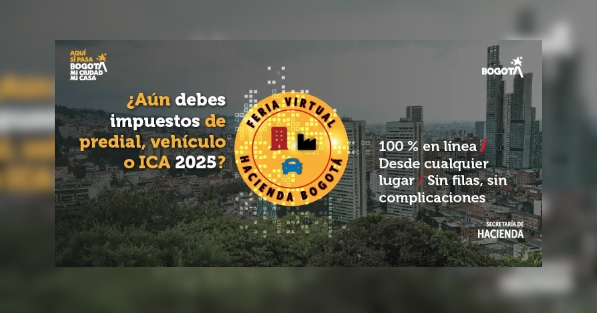 Este contenido fue creado a partir de la información proporcionada y difundida por la Secretaría Distrital de Hacienda https://www.haciendabogota.gov.co/es . El artículo fue curado por un o una periodista del Portal Bogotá. Si tienes alguna sugerencia, observación o necesitas más información sobre la nota publicada, puedes hacerlo a través de los canales de atención a la ciudadanía de la entidad mencionada o en Bogotá te Escucha: https://bogota.gov.co/sdqs/.