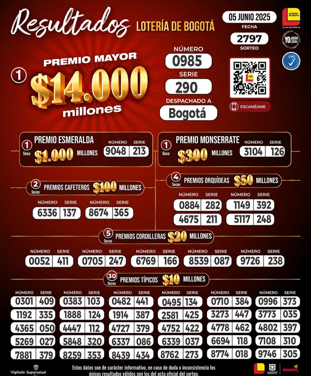 También te puede interesar: Lotería de Bogotá: conoce aquí resultados del último sorteo jueves 5 de junio