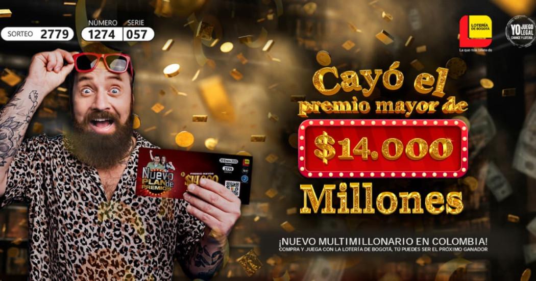 La Lotería de Bogotá se complace en anunciar que el premio mayor de 14.000 millones de pesos de la Lotería de Bogotá cayó en el sorteo del jueves 30 de enero con el número 1274 de la serie 057. Este increíble premio fue despachado a la ciudad de Bucaramanga, demostrando una vez más que la Lotería de Bogotá cumple con sus ganadores y sigue cumpliendo sueños.
