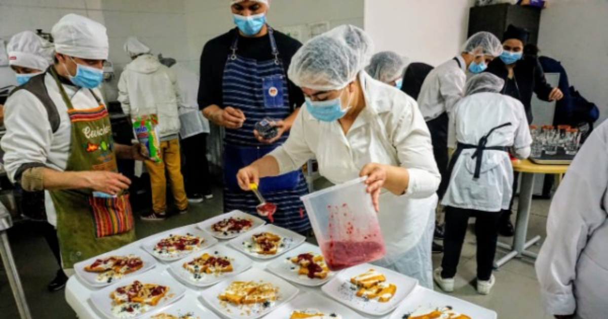 El prealistamiento de los alimentos, la preparación, el emplatado y el servicio se realizan con el acompañamiento permanente de un equipo interdisciplinario conformado por un terapeuta ocupacional, una nutricionista, un gastrónomo, una educadora especial y los talleristas del servicio.