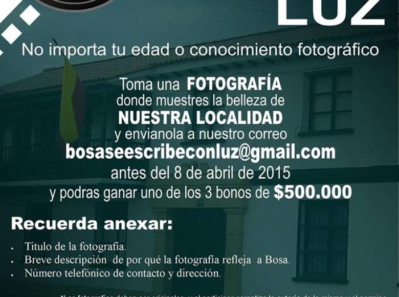La Alcaldía Local de Bosa invita a los amantes de la fotografía a que se inscriban en el concurso 'Bosa se escribe con luz' y participen con una fotografía que muestre la belleza de localidad. Las fotos ganadoras será premiadas con bonos por un valor de 500 mil pesos.