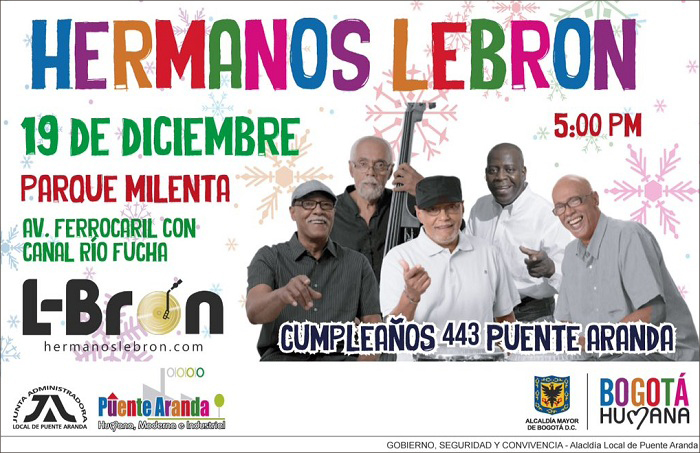 La orquesta de los Hermanos Lebrón, y las orquestas locales Sonovisión, Dyago, la banda matices y 4 grados, serán las encargadas de poner a bailar a los habitantes y visitantes de la localidad 16 de Puente Aranda, en la celebración del cumpleaños 443 de la localidad.