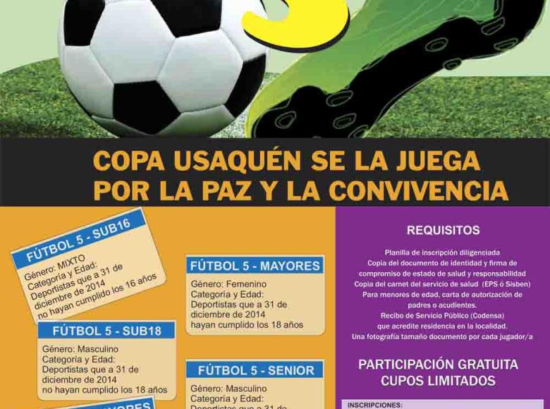 Hombres y mujeres residentes en la localidad de Usaquén, amantes del deporte y del fútbol podrán inscribirse para participar en la 'Copa Usaquén se la juega por la paz y la convivencia' hasta el próximo viernes 10 de abril. El evento es gratuito. Cupos limitados.