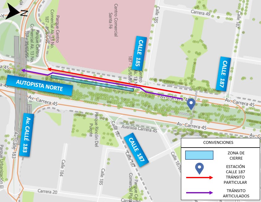 Avanzan las obras en ‘Bogotá, mi Ciudad, mi Casa’. La Secretaría Distrital de Movilidad (SDM) autorizó el cierre de la calzada occidental exclusiva de TransMilenio con paso de los buses al carril oriental de la calzada mixta occidental sentido norte-sur, de la autopista Norte entre avenida calle 183 y calle 185 y entre la calle 189 y calle 192.