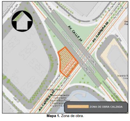 Los paraderos de SITP existentes sobre la av. Carrera 68 con Av. Calle 24, en sentido norte - sur, serán unificados y reubicados así: