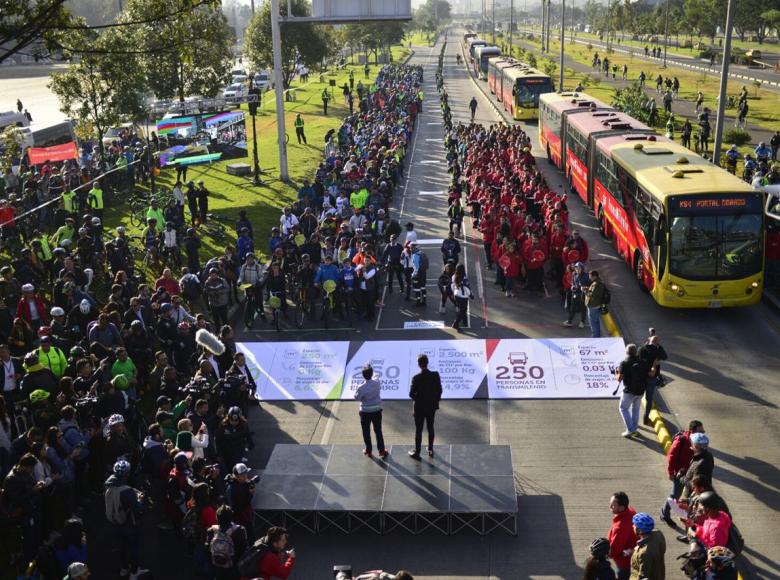 Desde las 6:00 a.m. la alcaldesa Claudia López acompañó el experimento de movilidad sostenible con el que la Alcaldía de Bogotá demostró cómo todos podemos mejorar el medio ambiente en la ciudad. El ejercicio contó con la participación de 250 personas y comparó el uso de distintos medios de transporte como bicicleta, TransMilenio y vehículos.