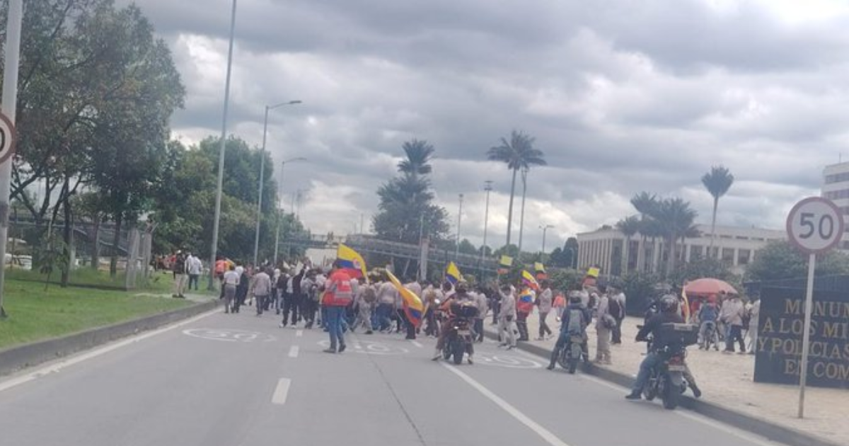 Manifestantes avanzan por la carrera 60, generando afectación vial en la calzada.