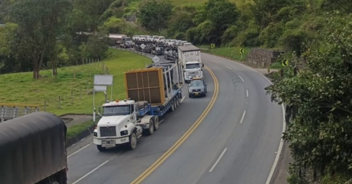 Atención. Se presenta cierre en la variante del kilómetro 18+000, (tractomula presenta fallas mientras realizaba el descenso y queda varada en el kilómetro 19+000, ocasionando el cierre en ambos sentidos), esté atento a las indicaciones de la Policía de Tránsito y Transporte.