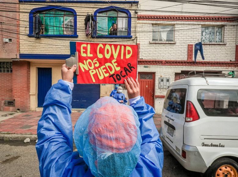 La Alcaldía de Bogotá recorrió las localidades de Rafael Uribe y Uribe y Puente Aranda, para recordarle a sus habitantes la importancia del autocuidado y cuidado colectivo en zonas declaradas de cuidado especial por el alto riesgo de contagio de COVID-19.