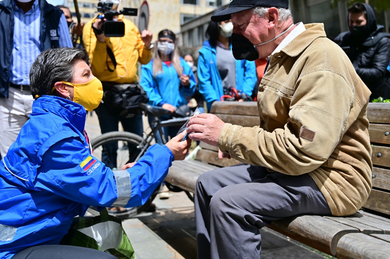 "Está en nuestras manos cuidarnos y vamos desde hoy a trabajar para que los vendedores que salen diariamente a la calle aprendan a cuidarse y jamás salgan sin su tapabocas", dijo Claudia López, quien aseguró que este elemento de protección se convierte en una prenda de la vida, pues su uso adecuado puede seguir salvando vidas.