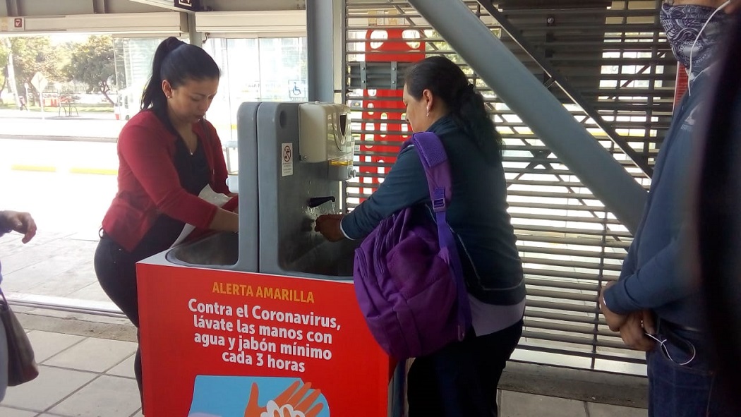 A través de los lavamos portátiles que ha dispuesto el distrito y que se van rotando por las diferentes estaciones del sistema, los ciudadanos previenen cualquier tipo de contagio.