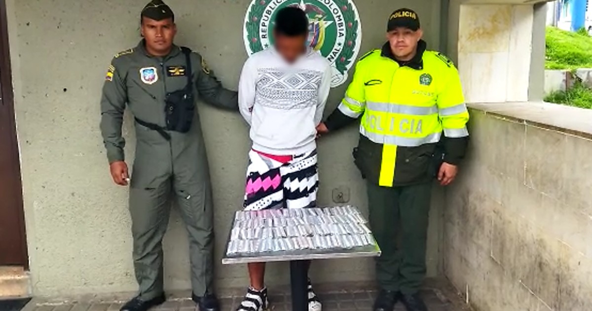 El detenido fue dejado a disposición de autoridades competentes por los delitos de tráfico o porte de estupefacientes.