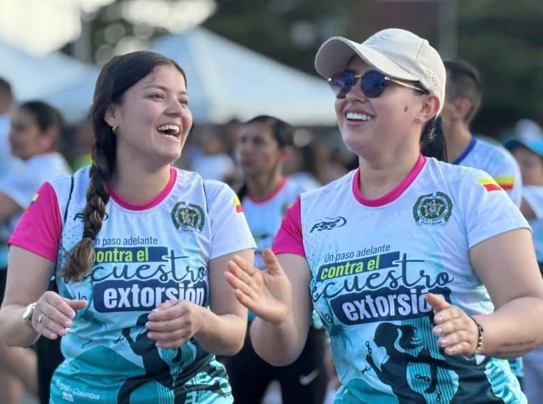 En la carrera participaron figuras como Silvio Salazar, reconocido fondista colombiano y Diana Ospina, víctima de la modalidad delictiva conocida como 'paseo millonario', compartió su testimonio como una voz de empoderamiento y resiliencia, promoviendo la denuncia y la prevención de este tipo de delitos, incentivando a los asistentes a denunciar oportunamente este tipo de hechos en la la Línea 165 o a través de la Línea de Emergencias 123.