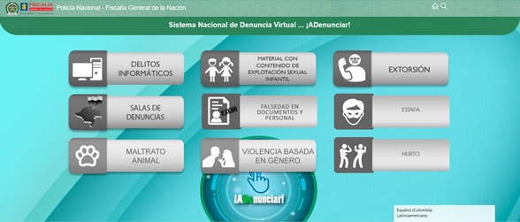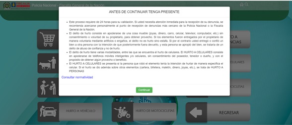 2. Ingresas y vas a encontrar nueve botones donde se especifican los diferentes tipos de denuncias. Selecciona el botón que dice ‘hurto’.