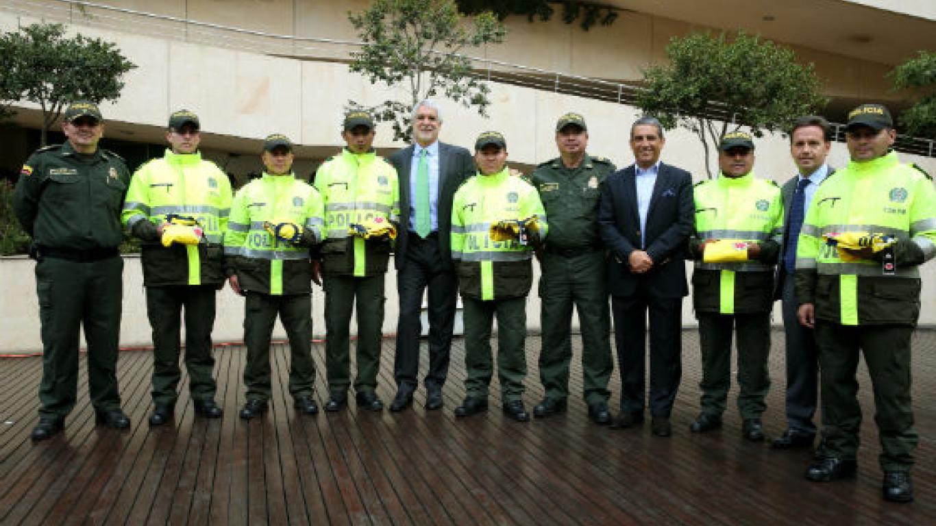 El alcalde de Bogotá, Enrique Peñalosa, el subsecretario de seguridad, Daniel Mejía, y el vicepresidente de Asuntos Corporativos de Bavaria S.A., Fernando Jaramillo, destacaron la labor de los patrulleros en pro de la seguridad ciudadana.