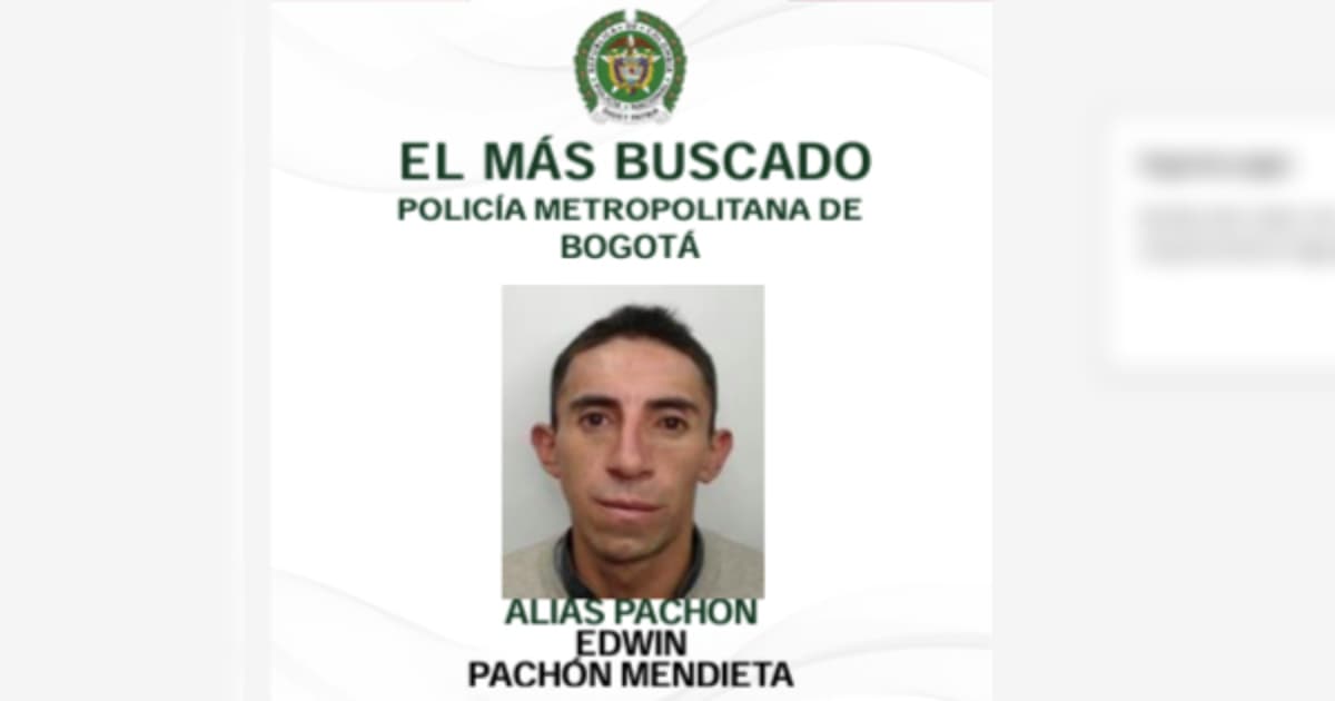 Revisa a continuación el cartel de búsqueda de la Policía de Bogotá, de alias 'Pachón' o Edwin Pachón Mendieta: