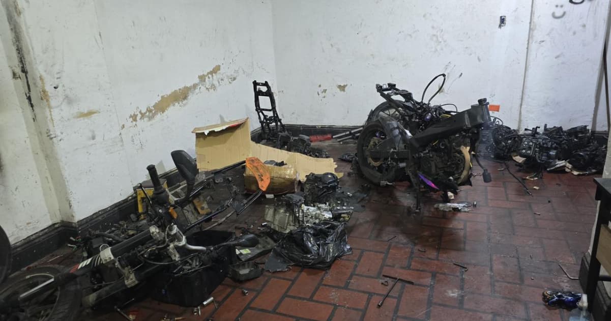 En medio del procedimiento, los uniformados observaron una bodega abierta con varias personas dentro y fuera. Uno de estos ciudadanos, al notar la presencia de las autoridades, arrojó un arma de fuego al interior del local para no ser capturado. Al ingresar a este establecimiento, se constató que en este lugar se dedicarían, al parecer, al desguace de motocicletas. Encontraron herramientas y partes de motocicletas como: motores, llantas, farolas, suspensiones, entre otras partes con sus sistemas alterados y otras sin identificación. Durante el procedimiento fueron capturadas ocho personas: una, por tráfico, fabricación o porte de armas de fuego; las otras siete, por el delito de falsedad marcaria y receptación.