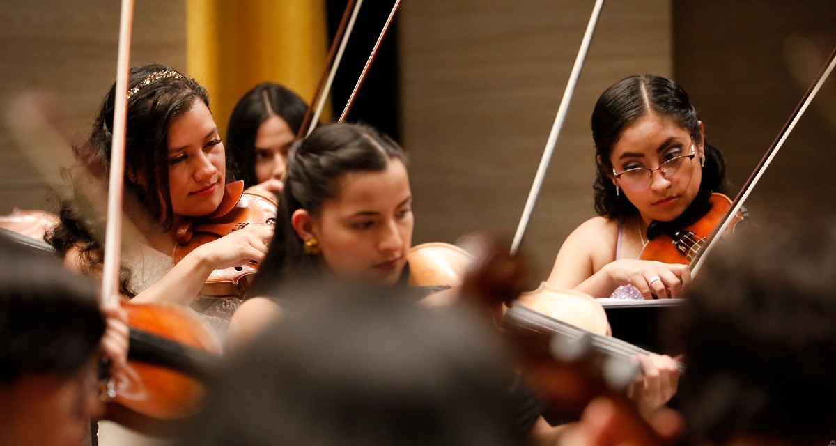 Orquesta Filarmónica de Mujeres Agrupaciones de Cámara QUINTETO: Ingrid Cardozo - Violin Tania Ladino - Viola Luisa Torres - Contrabajo Mayerly Diaz - Oboe Yina Paola Valero - Clarinete Repertorio: libre Obertura del Prologo de Cephale et Procris Elisabeth Jaquet de la Guerre Quinteto en G menor Op. 39 Serguei Prokofiev DUETO DE VIOLÍN: Valentina Arroyo - Violin Valentina Vargas - Violin Repertorio Latinoamericano
