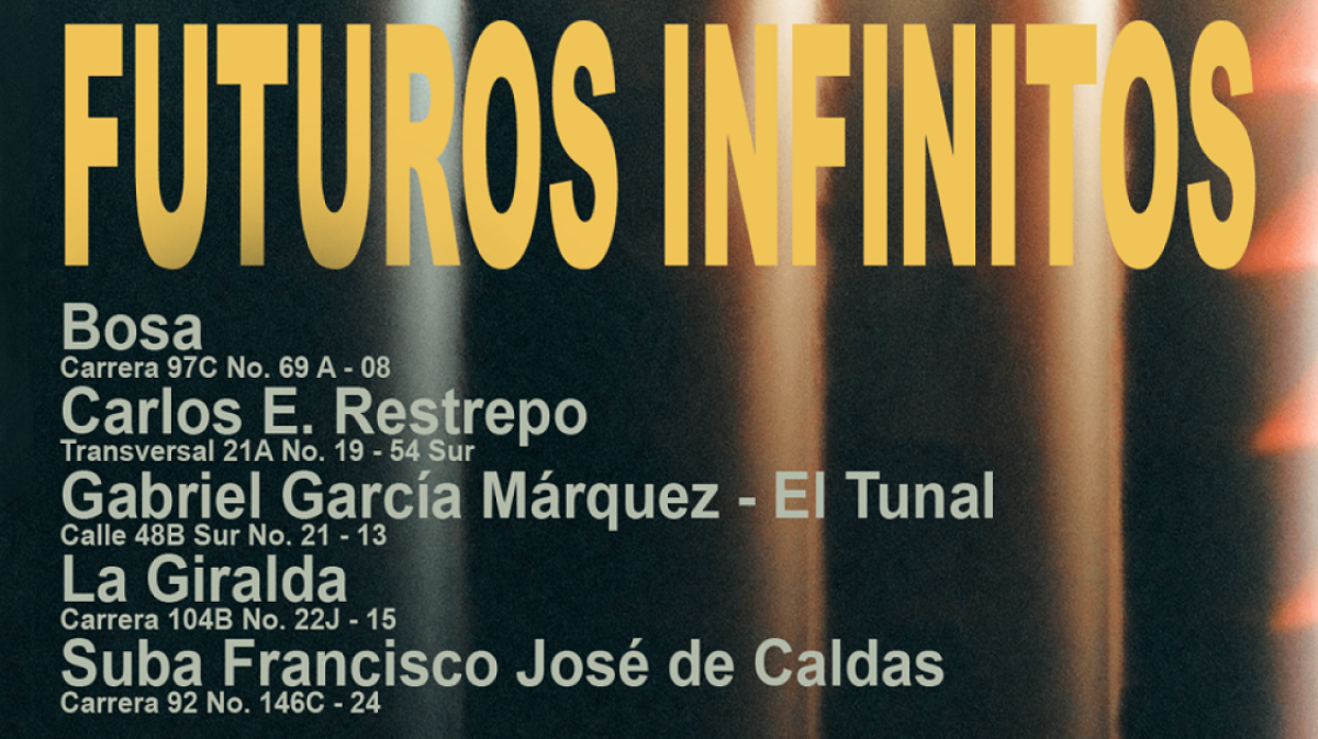 ‘Futuros Infinitos’ es el resultado de talleres realizados por Relámpago y BibloRed con diferentes colectivos de la comunidad LGBTIQ, así como algunos integrantes de ‘Arco Iris’, un colectivo de personas sordas con orientaciones sexuales e identidades de género no hegemónicas. Visita gratuitamente la exposición ‘Futuros Infinitos’, organizada por Programación Cultural, la Escuela de Lectores de BibloRed y Relámpago, a partir del 15 de septiembre y hasta el 16 de octubre en las Bibliotecas Públicas La Giralda, Carlos E. Restrepo, El Tunal, Bosa y Suba. Ubicaciónes: Biblioteca Pública La Giralda - Carrera 104B No. 22J - 15 Biblioteca Pública Carlos E. Restrepo - Transversal 21A No.19-54 sur Biblioteca Pública Gabriel García Márquez - El Tunal - Calle 48B sur No. 21-13 Biblioteca Pública Bosa - Cra 97 C No. 69 A - 08 Sur Centro Comercial Metro Recreo, Quinto nivel Biblioteca Pública de Suba Francisco José de Caldas - Carrera 92 No. 146 C - 24