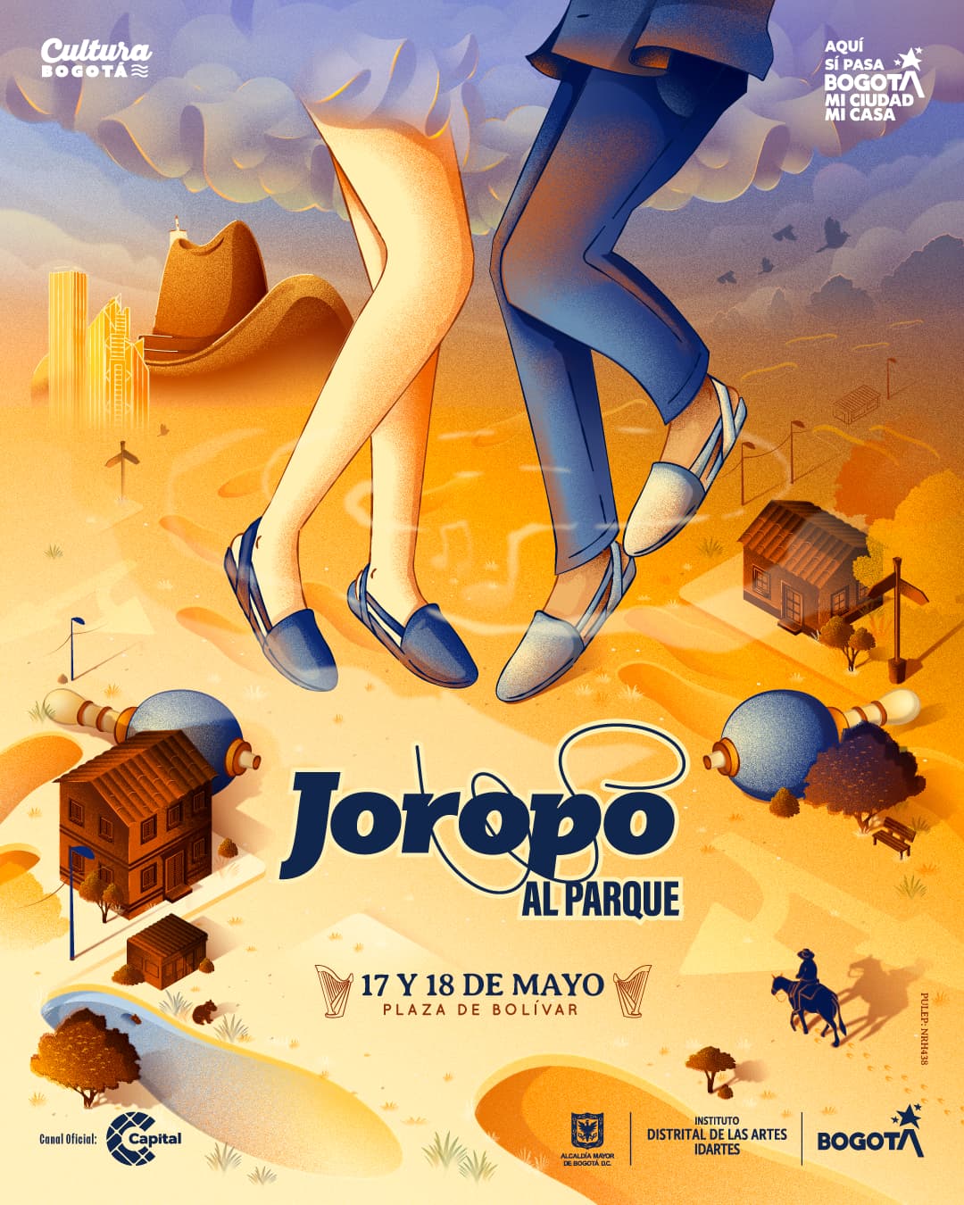 ¡Aquí sí pasa, en Bogotá, mi Ciudad, mi Casa celebramos la identidad, raíz y pasión llanera! Los bogotanos, bogotanas y visitantes podrán disfrutar este sábado 17 y domingo 18 de mayo de 2025, las raíces, la diversidad y la evolución del zapateo en la Plaza de Bolívar con el Festival Joropo al Parque 2025. La Alcaldía Mayor de Bogotá y el Instituto Distrital de las Artes (Idartes) se enorgullecen de presentar el Festival Joropo al Parque en su cuarta versión. ¡Asiste con tu familia y amigos. Conoce aquí toda la programación gratuita!