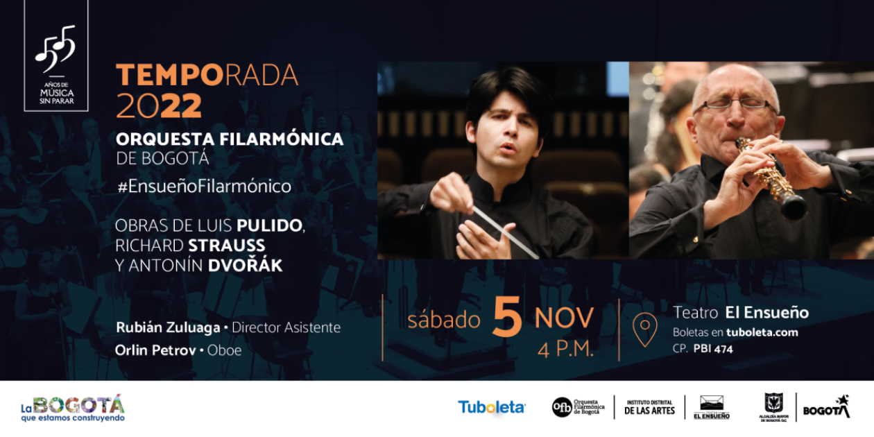 Orquesta Filarmónica de Bogotá Director Asistente: Rubián Zuluaga Solista: Orlin Petrov – Oboe - Luis Pulido (1958 - ) Tequendama (2012) - Richard Strauss (1864 - 1949) Concierto para oboe (1945) I. Allegro moderato II. Andante III. Vivace, allegro - Antonín Dvořák (1841 – 1904) Sinfonía N° 1 “Las Campanas de Zlonice” (1865) I. Maestoso - Allegro II. Adagio di molto III. Allegretto - Trio IV. Finale - Allegro animato