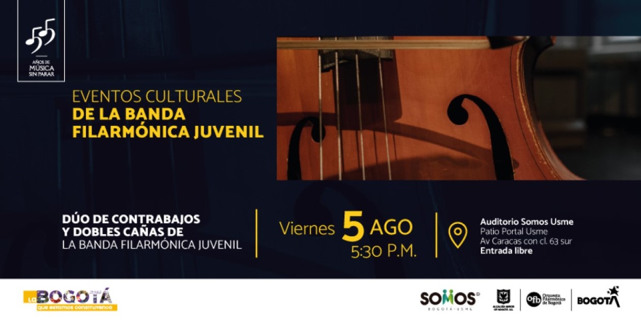 Estamos en Usme con los grupos de cámara de la Banda Filarmónica Juvenil Dúo de contrabajos: Joan Criollo Juan Ángel Cubides Dobles cañas: Fabian Leonardo Zárate - Oboe Juan David Gómez - Oboe Julián Felipe Cortes - Corno Inglés Nicolás Correa Patiño - Fagot David Felipe Reyes - Fagot