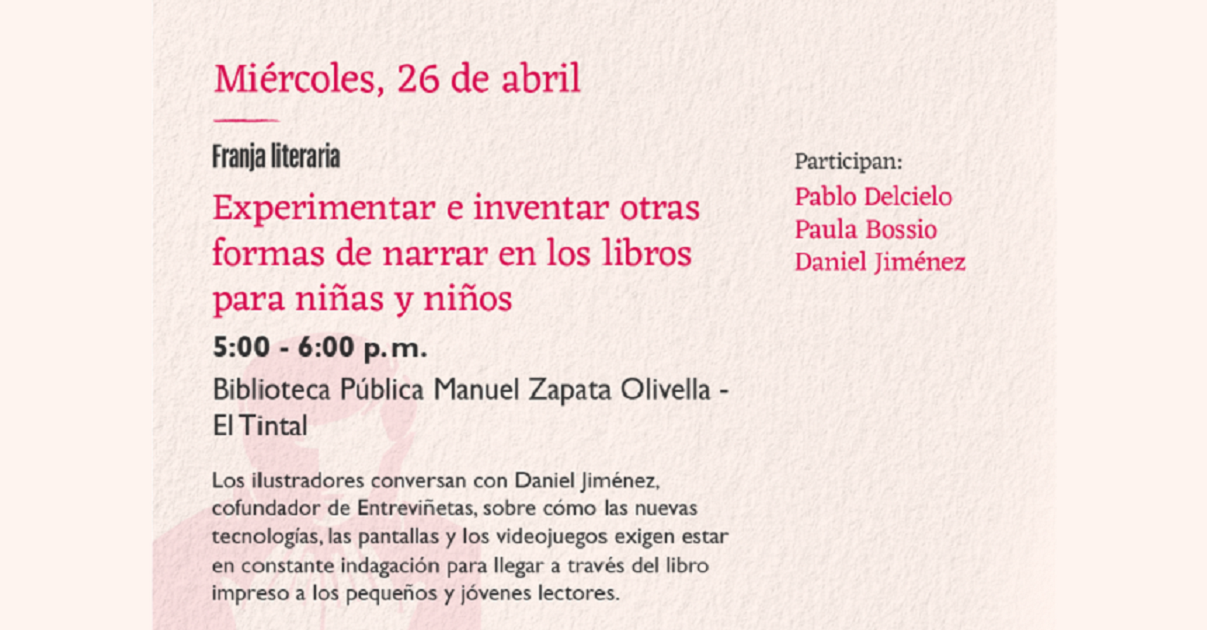En esta ocasión, los dos ilustradores conversan con Daniel Jiménez, editor, gestor cultural, consultor y cofundador de Entreviñetas, sobre cómo las nuevas tecnologías, las pantallas y los videojuegos exigen estar en constante indagación para llegar a través del libro impreso a los pequeños y jóvenes lectores: ¿Se pelean las pantallas con los libros? ¿Pueden convivir en tanto ofrecen experiencias diferentes? ¿Qué retos enfrentan los ilustradores y creadores a la hora de ganar lectores para los libros en papel?