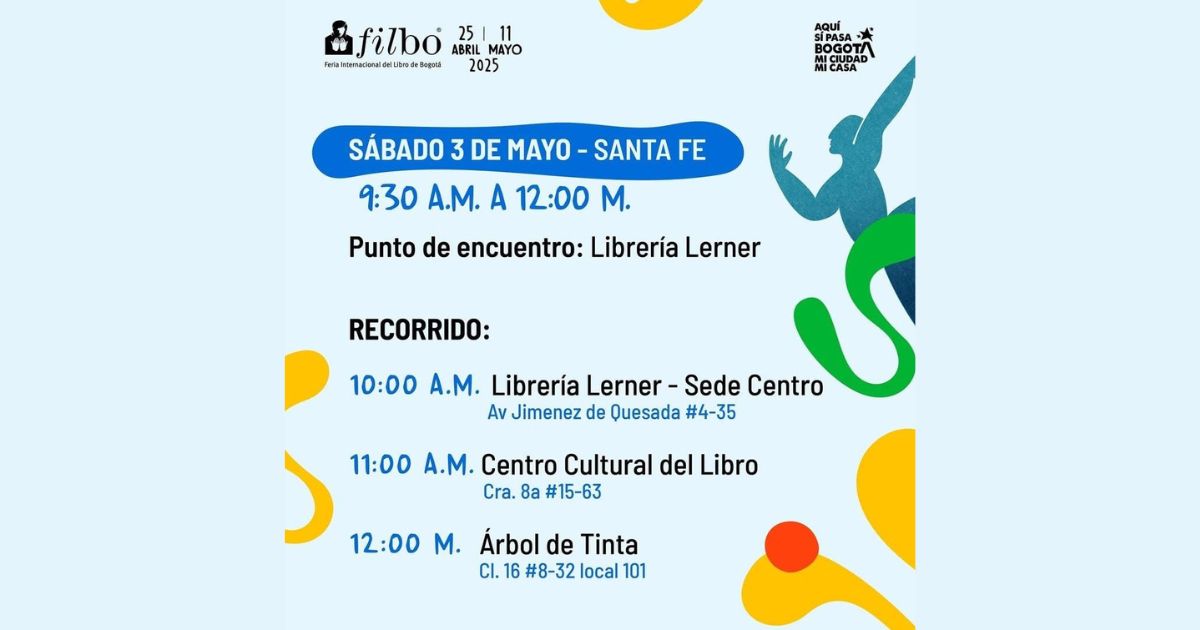 ¡Bogotá, mi Ciudad, mi Casa es literatura y cultura! La Secretaría de Cultura, Recreación y Deporte (SDCRD) y FILBo Ciudad, en el marco de la Feria Internacional el Libro de Bogotá 2025 (FILBo), te invitan al Circuito de librerías del Centro-Santa Fe, que se realizará este sábado 3 de mayo, de 9:30 a. m. 12:00 p. m. Evento sin costo. ¡Inscríbete aquí!