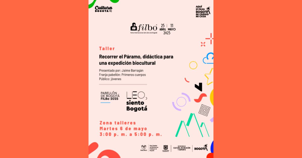¡Bogotá, mi Ciudad, mi Casa es literatura y cultura! La Secretaría de Cultura, Recreación y Deporte (SDCRD), en el marco de la Feria Internacional el Libro de Bogotá 2025 (FILBo), te invitan a la charla/taller 'Recorrer el Páramo, didáctica para una expedición biocultural', basada en el libro 'El páramo si tiene quien le escriba', que se realizará en la zona de talleres del Pabellón 'LEO, siento Bogotá', el martes 6 de mayo, a las 3:00 p. m. ¡Entrada a la feria con costo!