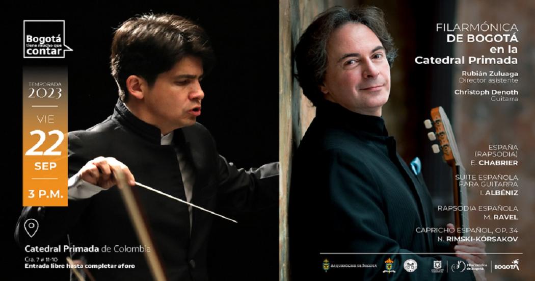 La Temporada 2023 de la @filarmonibogota presenta en la Catedral Primada de Colombia, un concierto junto al guitarrista suizo @christophdenoth, músico que combina la solidez europea con la fantasía mediterránea. #MásQueUnaOrquesta¡La entrada es libre, no te lo pierdas! 👉 pic.twitter.com/rUC9R219fb