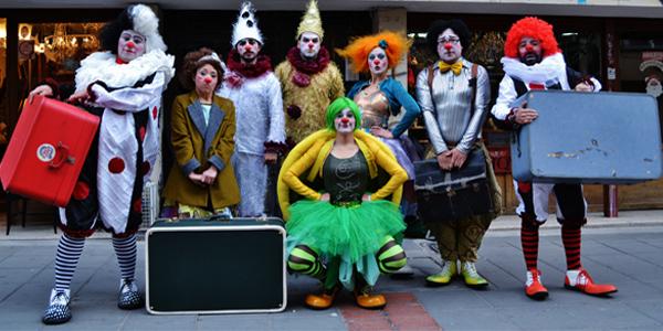Ocho payasos con sus voces y sus instrumentos musicales (Guitarras, Cuatro, Acordeón Francés, Gaita, y otros) cantan a los bogotanos transeúntes, la increíble aventura de Momo en un país de hombres grises, sordos, intolerantes, que no respetan la naturaleza, ni a sus animales, porque lo único que les importa es ahorrar tiempo.