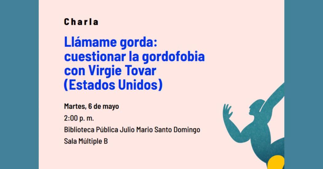¡Bogotá, mi Ciudad, mi Casa es literatura y cultura! La Secretaría de Cultura, Recreación y Deporte (SDCRD) y FILBo Ciudad, en el marco de la Feria Internacional el Libro de Bogotá 2025 (FILBo), te invitan a la charla ´Llámame gorda: cuestionar la gordofobia´ con Virgie Tovar (Estados Unidos), que se realizará en la Sala Múltiple B, de la Biblioteca Pública Julio Mario Santo Domingo este martes 6 de mayo de 2025, a las 2:00 p. m. ¡Entrada libre!