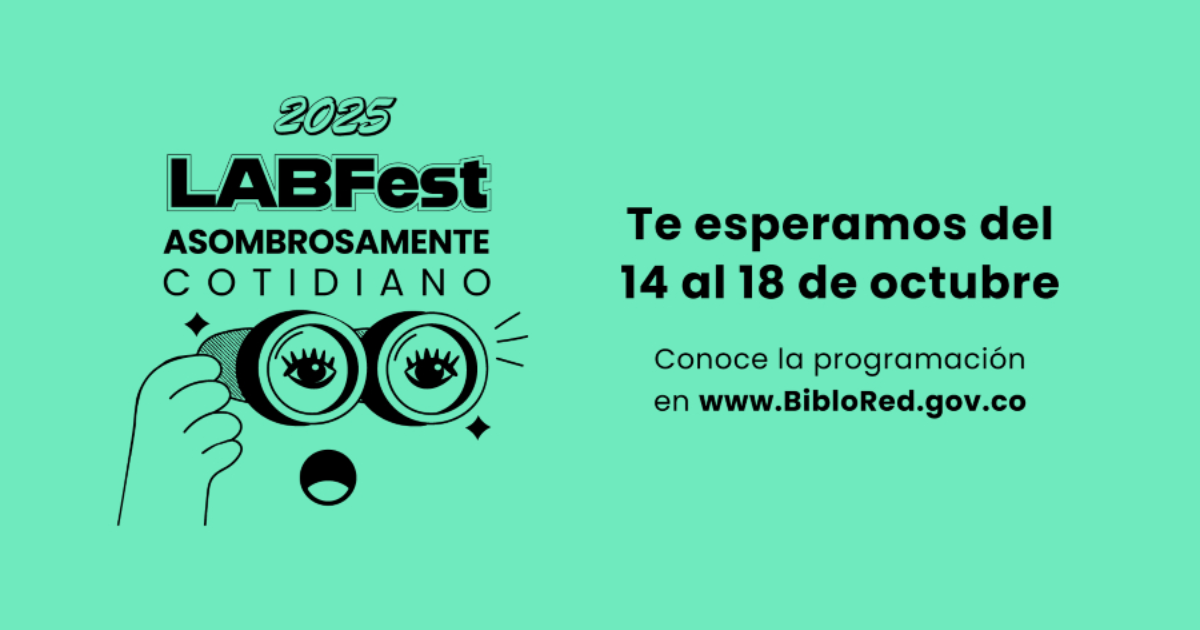 Este año, el LabFest llega a su tercera edición, consolidándose como un escenario que visibiliza la innovación social y la creación colectiva desde lo cotidiano. Del 14 al 18 de octubre, las bibliotecas públicas Gabriel García Márquez, El Tunal, Manuel Zapata Olivella , El Tintal, Bosa, El Deporte – Centro Felicidad (CEFE) de Chapinero, Virgilio Barco y Julio Mario Santo Domingo abrirán sus puertas para una nueva edición del LabFest, que en esta ocasión tiene como eje central lo asombrosamente cotidiano: una invitación a descubrir la ciencia, la creatividad y la innovación en los gestos, objetos y prácticas más cercanas de la vida diaria.