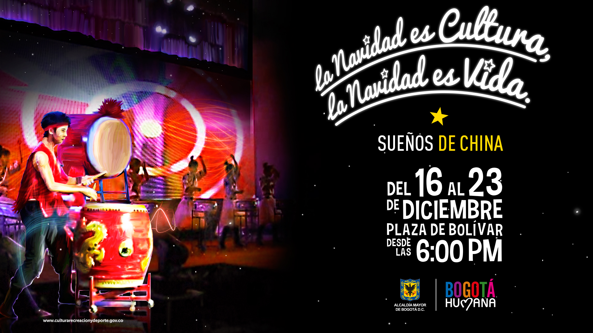 Desde hoy 16 y hasta el próximo 23 de diciembre, Bogotá disfrutará de un evento único en su clase, 'Sueños de China' danza con tambores, quienes llegan desde Asia para llenar de color y alegría la navidad de los capitalinos en la plaza de Bolívar. Funciónes: 6 p.m. 7:40 p.m. y 9:20 p.m. entrada libre.