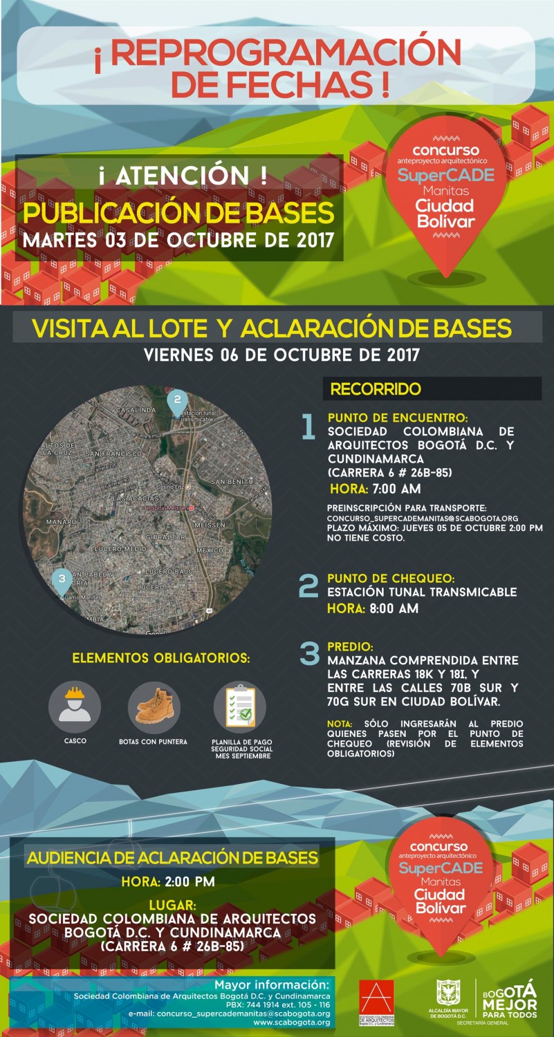 ¡Concurse! se escogerá una propuesta arquitectónica, a nivel de anteproyecto, cuya obra física estará adyacente a la segunda estación del proyecto TransMiCable, en la manzana comprendida entre las carreras 18K y 18I, y entre las calles 70B sur y 70G sur (Ciudad Bolívar).