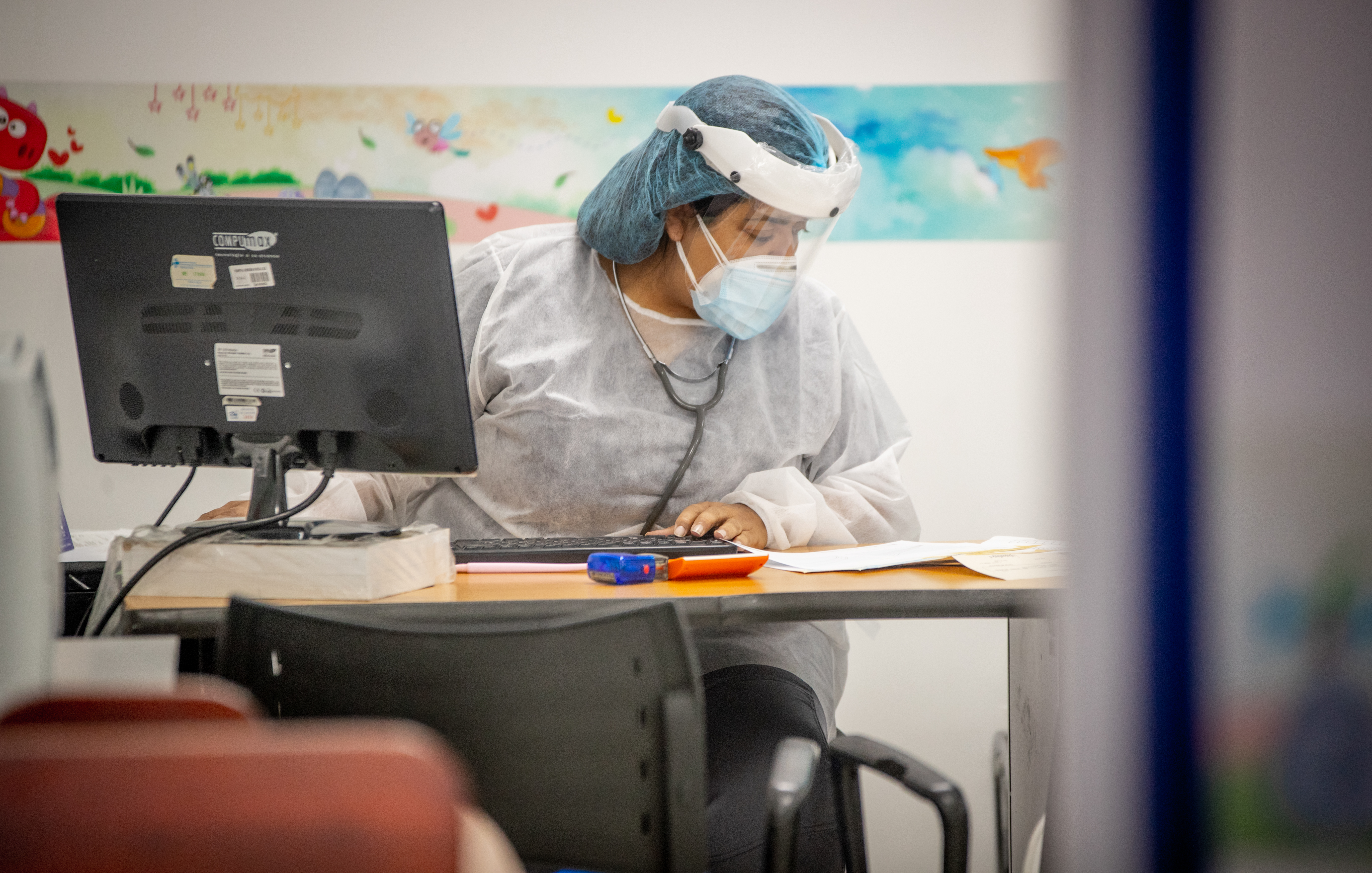 Profesionales asistenciales y administrativos de atención directa en COVID-19.
